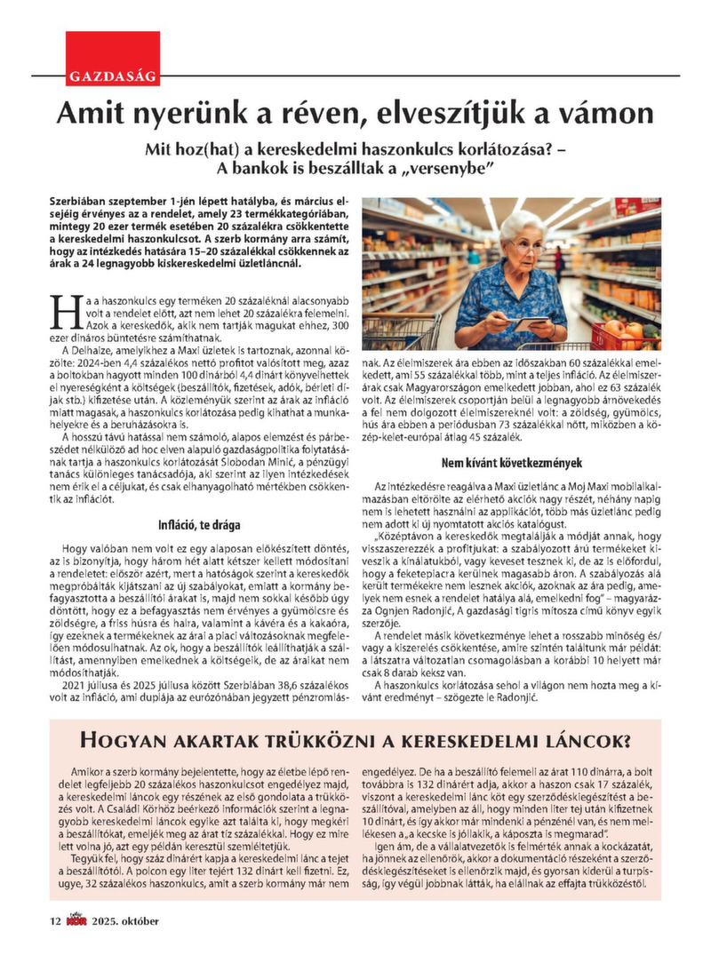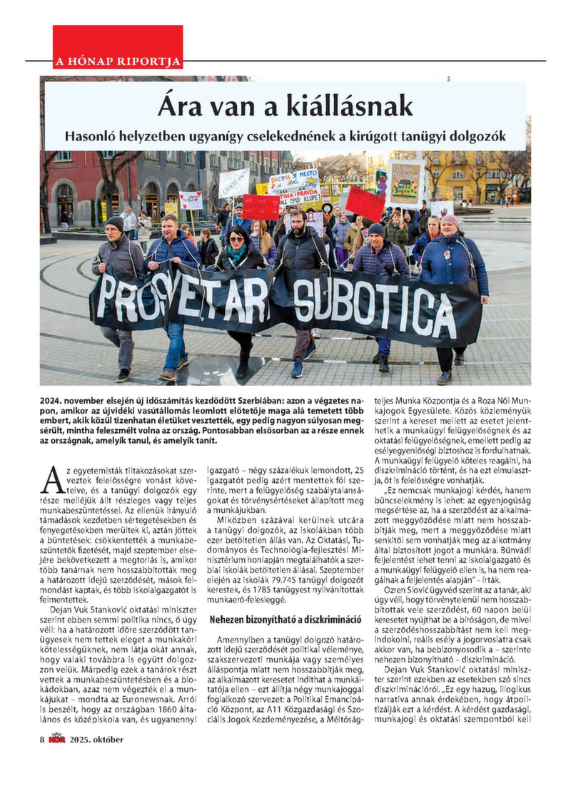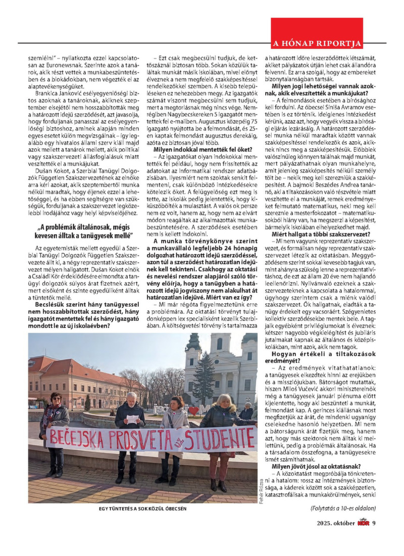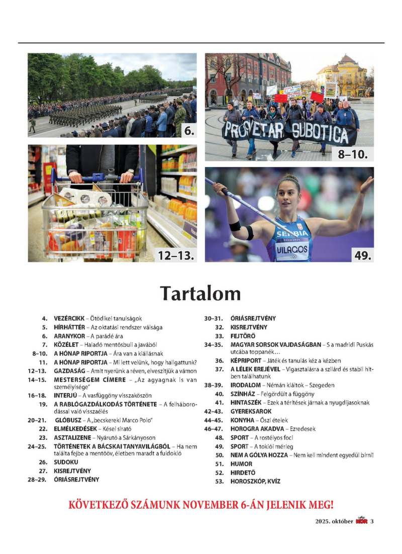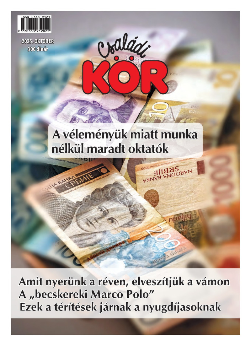 2025. OKTÓBER 300 dinár A véleményük miatt munka nélkül maradt oktatók Amit nyerünk a réven, elveszítjük a vámon A „becskereki Marco Polo” Ezek a térítések járnak a nyugdíjasoknak