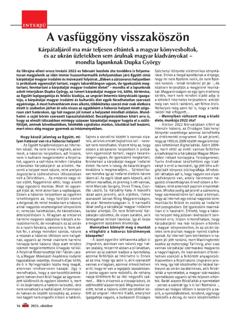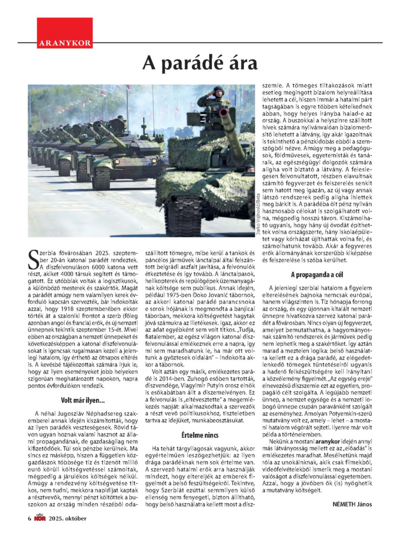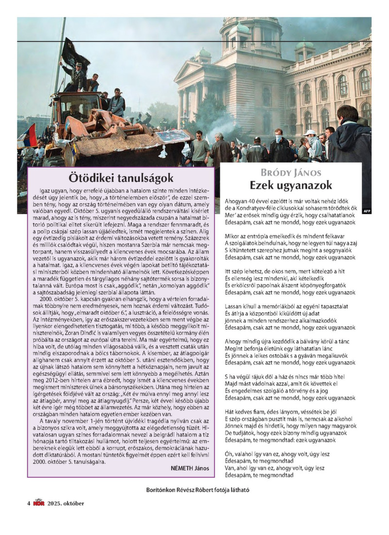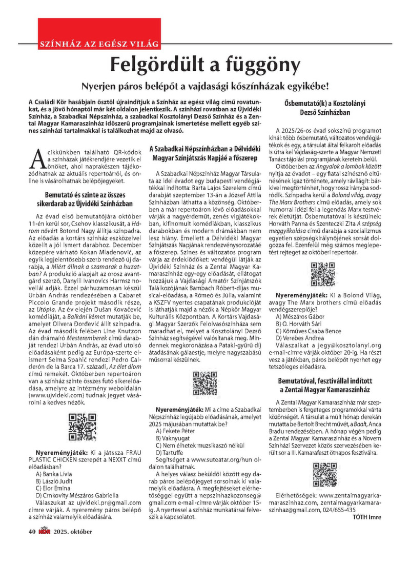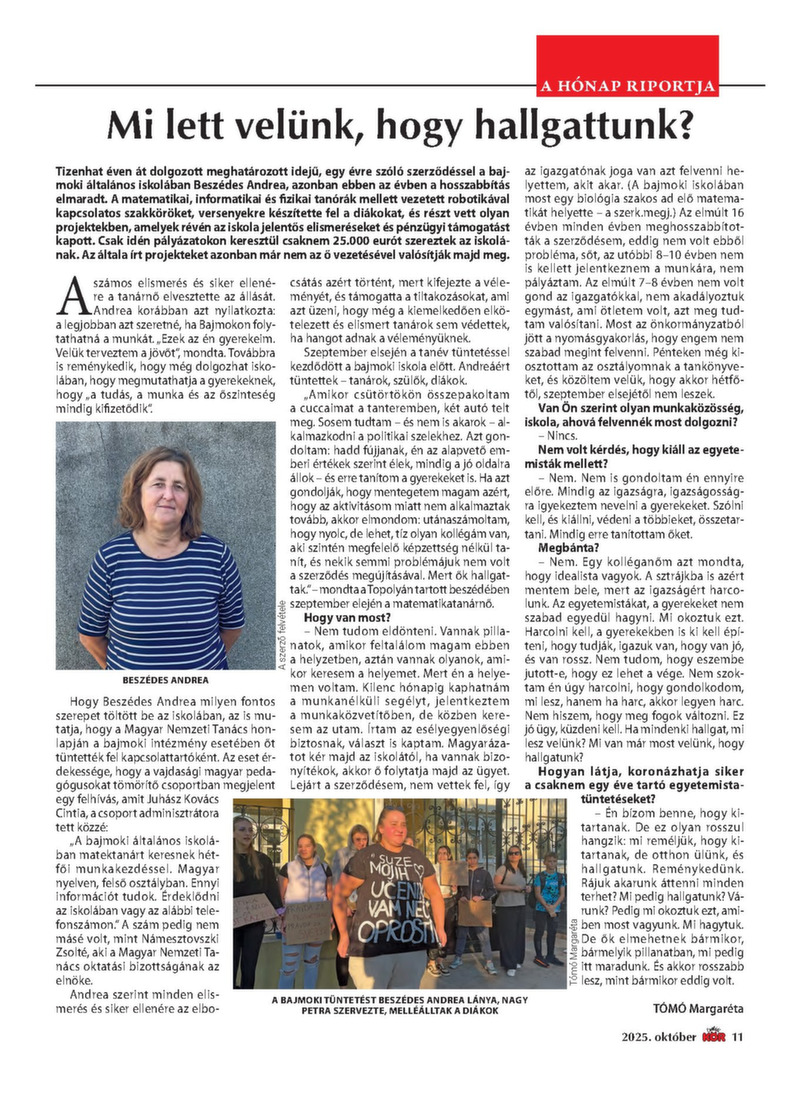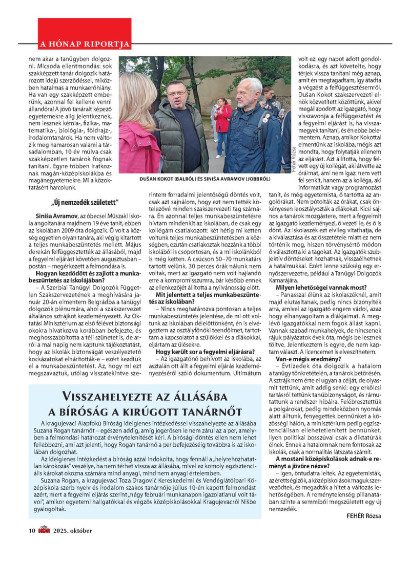 2025. OKTÓBER 300 dinár A véleményük miatt munka nélkül maradt oktatók Amit nyerünk a réven, elveszítjük a vámon A „becskereki Marco Polo” Ezek a térítések járnak a nyugdíjasoknak